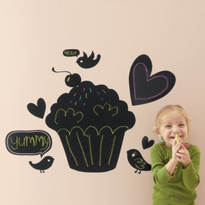 Company Kids. Their decals are pretty neat, clever and creative. The style is geared for younger kids, but with chalkboard decals, I think they can fit any age. I mean anyone can enjoy a cupcake chalkboard on their wall. Age is just a number! These decals are whimsical and can brighten up any room with the interactive qualities of them.